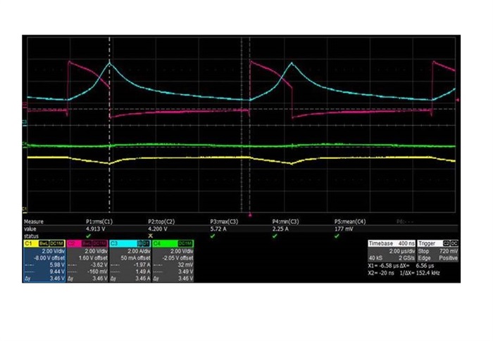 直到電壓升到5.72A時才關閉;當輸入電壓 < 5.5V時短路狀況都如此。