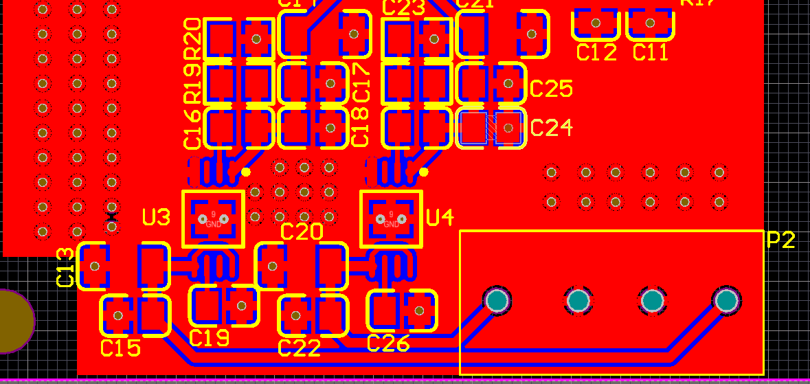 上图为PCB,2层板,反面为地平面、无元件,难道是我的布线有问题?