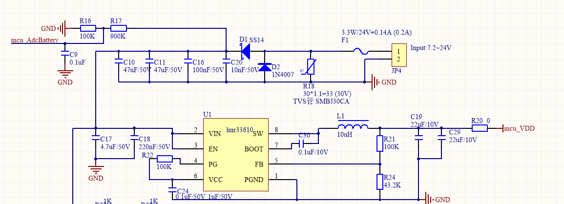 我这里要求输出是3.3v ,不知电路是否有问题。实际现象是电源输入为7.2V或以下的时候输出为0.4V多一点,电源输入为10几V的时候芯片就烧了!