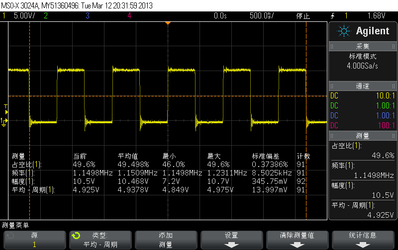3)DRVP管脚用示波器不能检测到1.2M的频率的电压输出,只有大约0.3V的电压