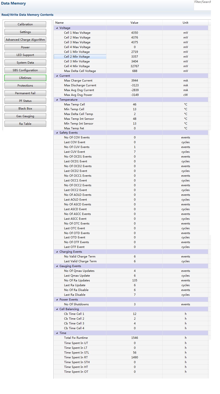 查看Lifetime后,Safty Events中,CUV发生次数从7~180次都有,证明CUV一级保护触发,并有效保护。