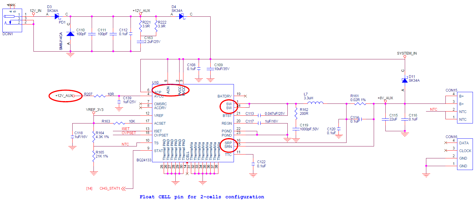 电池连续抽载Peak 10A,会因AVCC Pin的Bypass cap 1uF储能,造成AVCC Pin瞬间电压高于SRN Pin,导致BQ24133启动VREF。