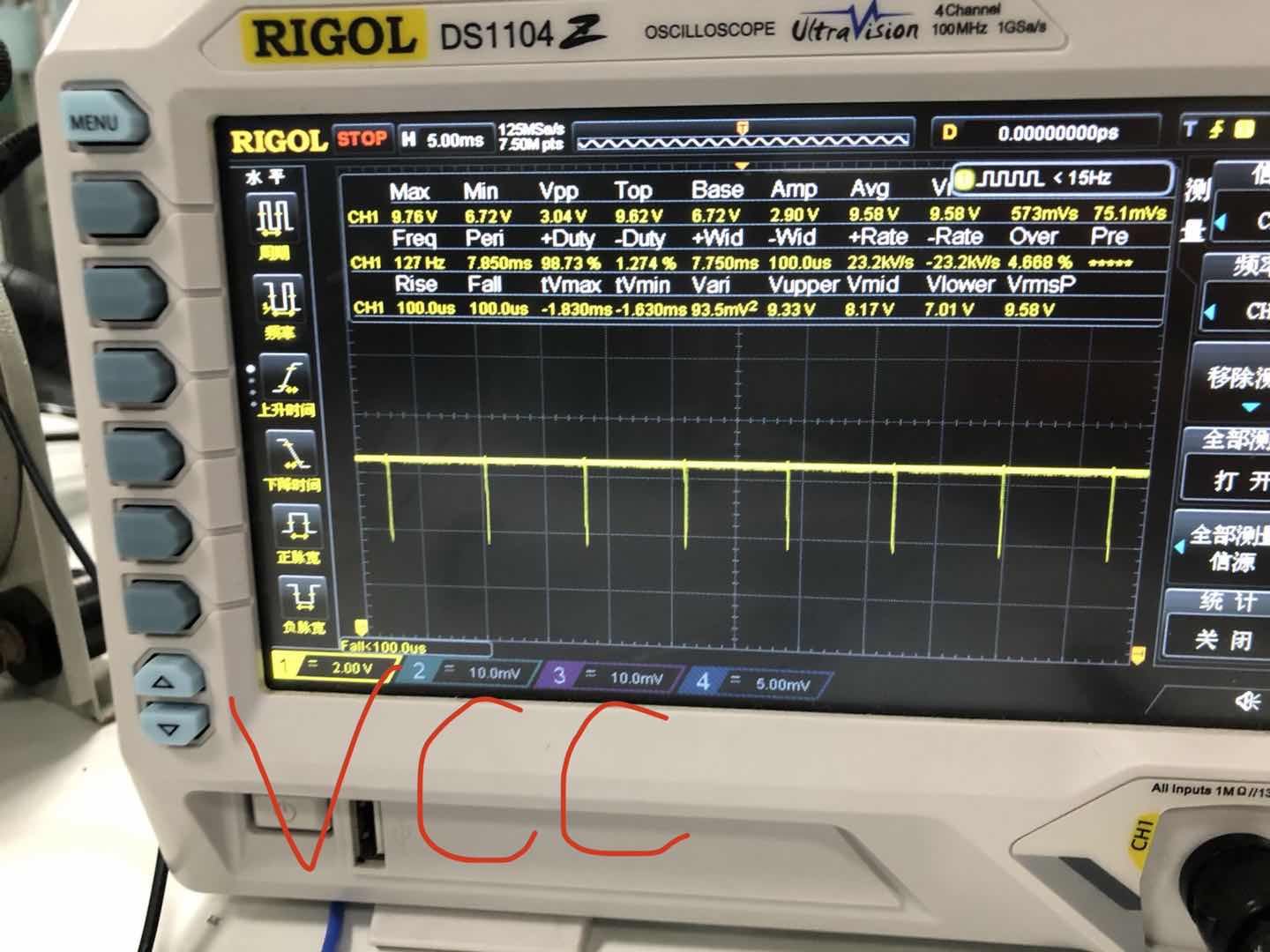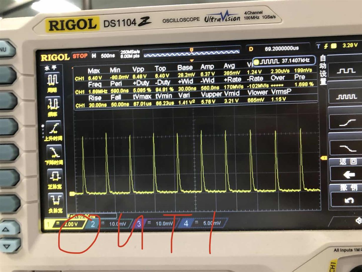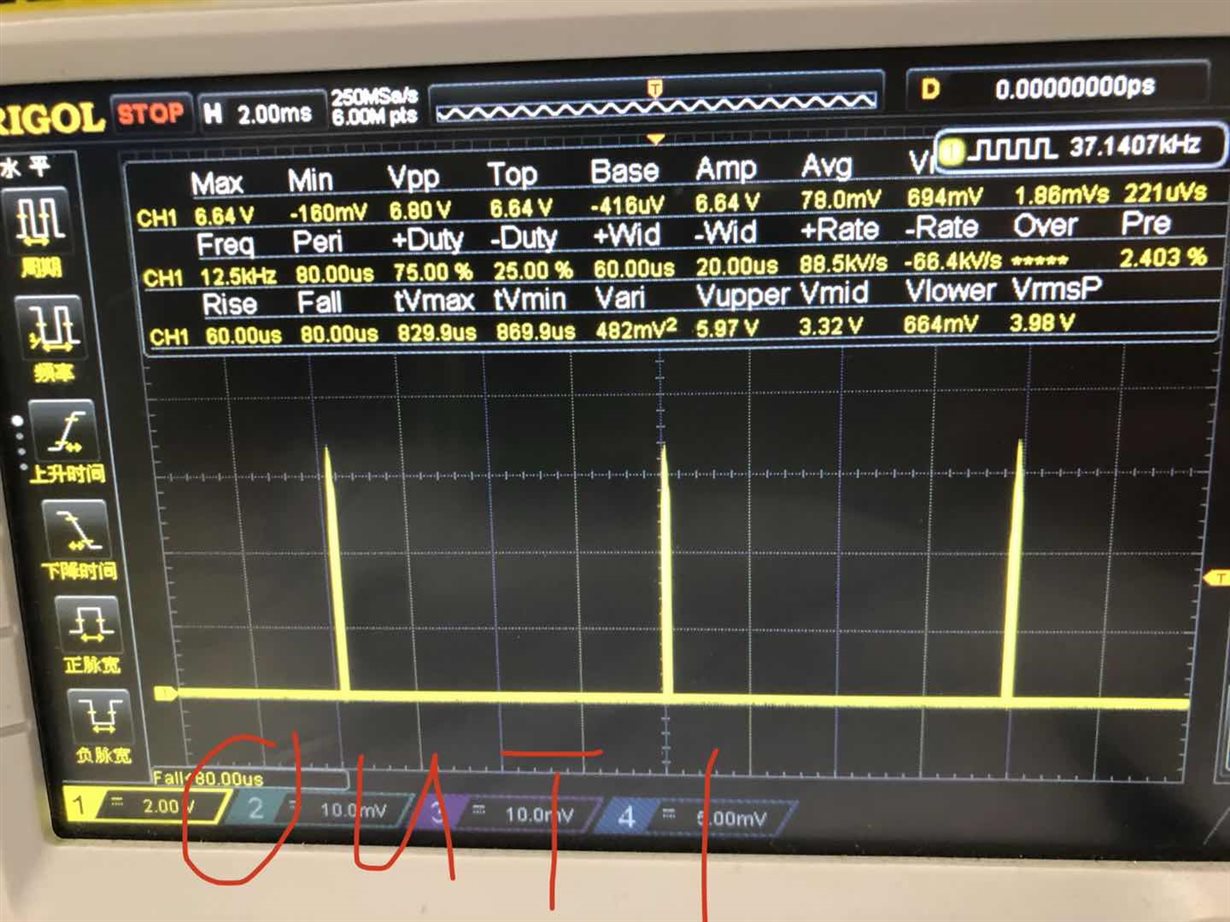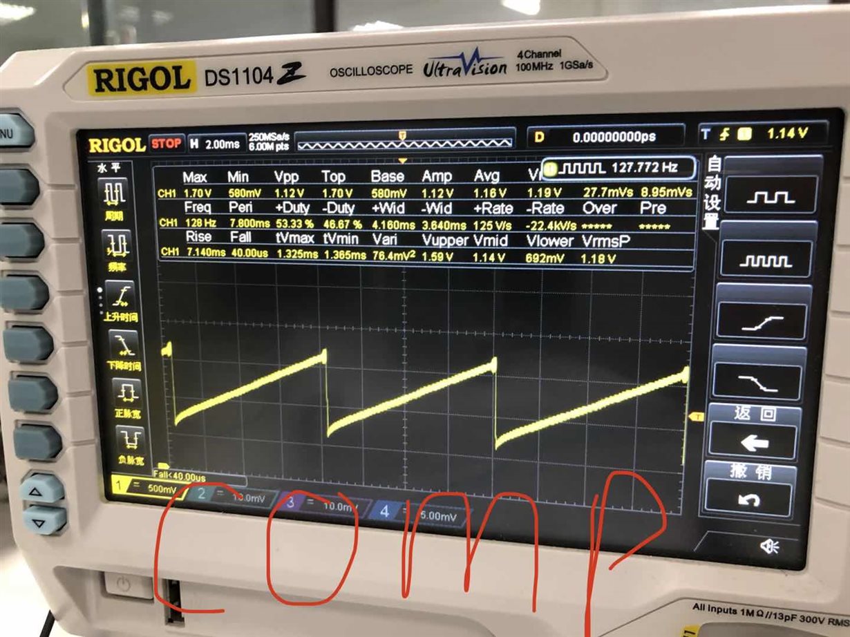 out1输出波形占空比太低 后来测量了一下其他几个管脚的波形 发现comp波形不正常、vcc波形 光耦led没有启动的情况下 comp被拉低