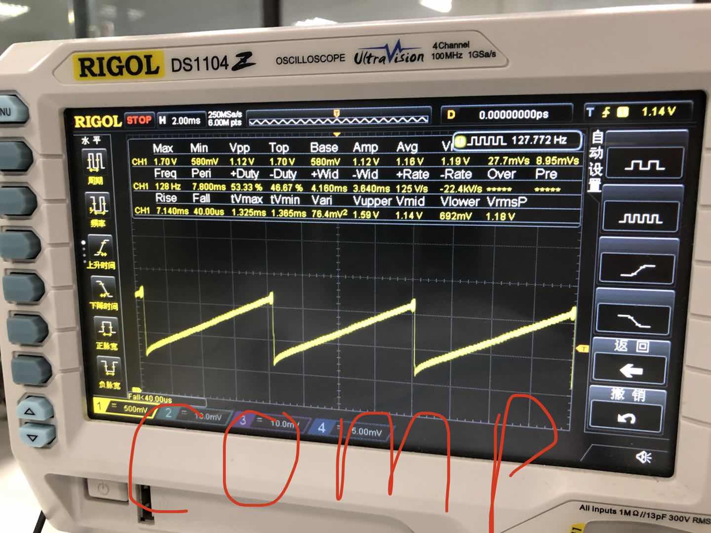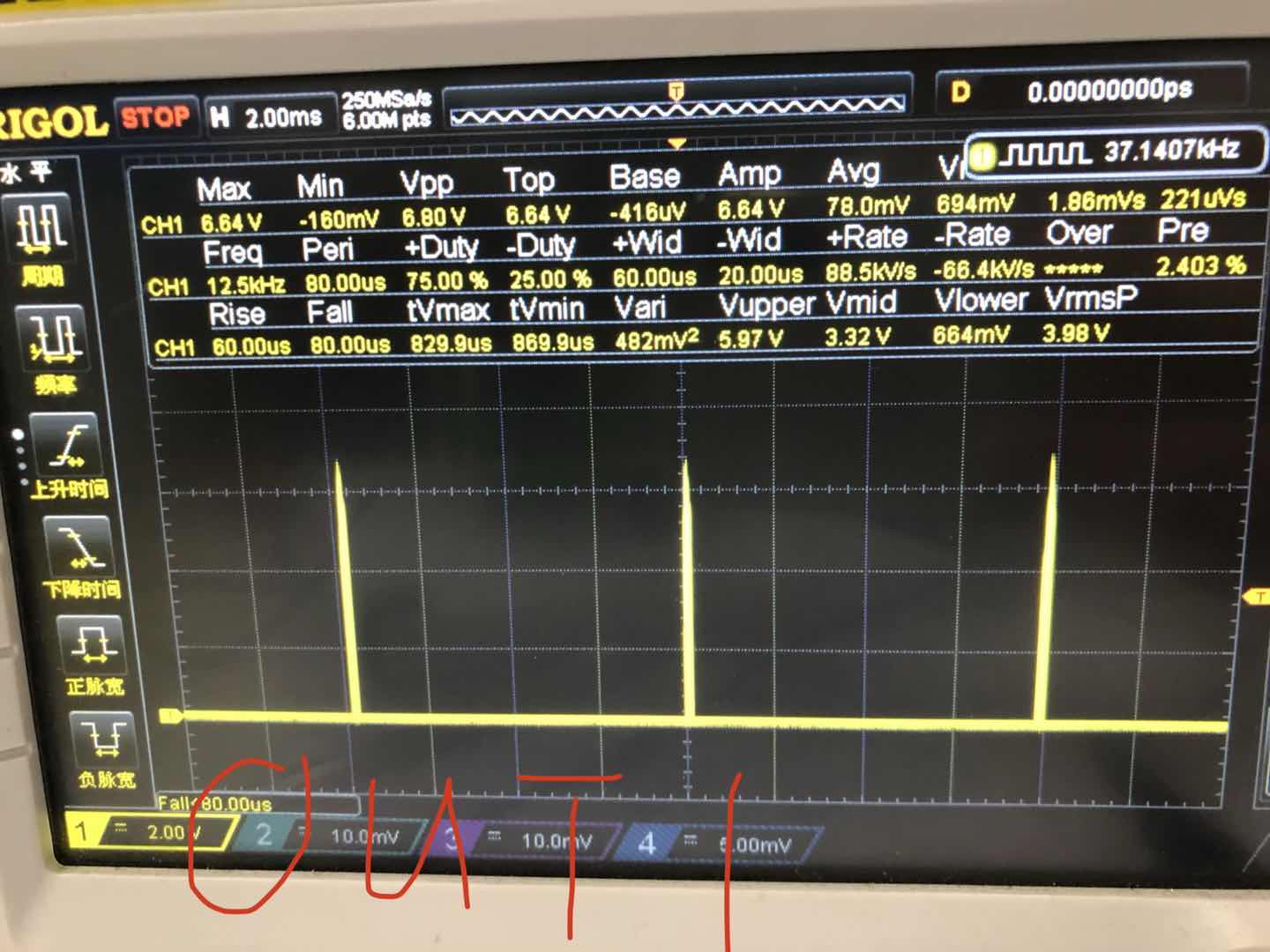 芯片驱动输出和开关mos连接后 out1输出波形如下图
