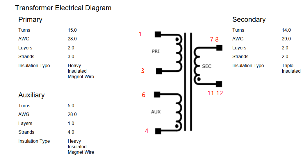 变压器参数是Core=Wurth Elektronik ,CoilFormer=Wurth Elektronik,Core=150-2449 ,CoilFormer=070-5050,Lp= 107.0 uH,Turns Ratio(Nas)=5:14,Turns Ratio(Nps)=15:14,Npri= 15.0,Naux= 5.0,Nsec= 14.0,PQ3220。