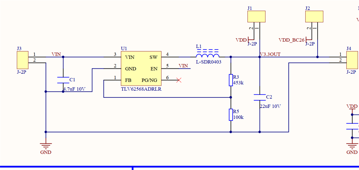 目前板子只焊接了这么多器件,然后测量输出电压为3.3V,正常,输入为3.6V,电流平均超过3.8mA,无法定位问题,是否电感选择不对会影响其轻载功耗?帮忙解答