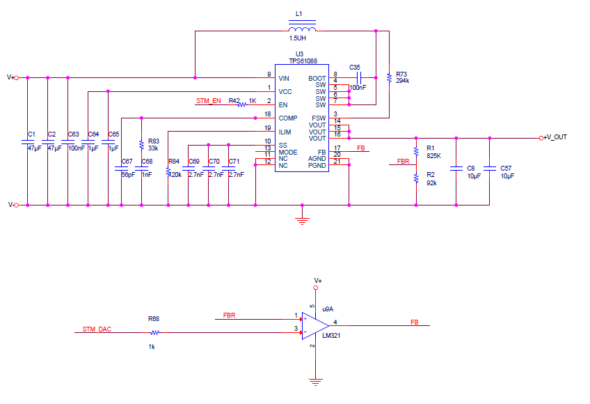 用18650电池供电,STM32控制TPS61088升压可调的数控电源电感响,电感用SPM6530T-1R5M100,帮忙看看怎么能消除响声!
