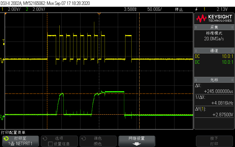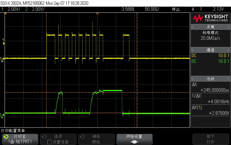 在和BQ78350-R1的通讯中可以读出LSB的信息,但是对应msb每次读出的都是0,当然也可以看到要上升的小脉冲,具体请看测试图。