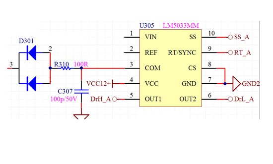 LM5033的规格书明确指出该管脚com脚的电压范围为-0.3~7V,正常工作时没有问题,但是现在我们模块有个待机状态,