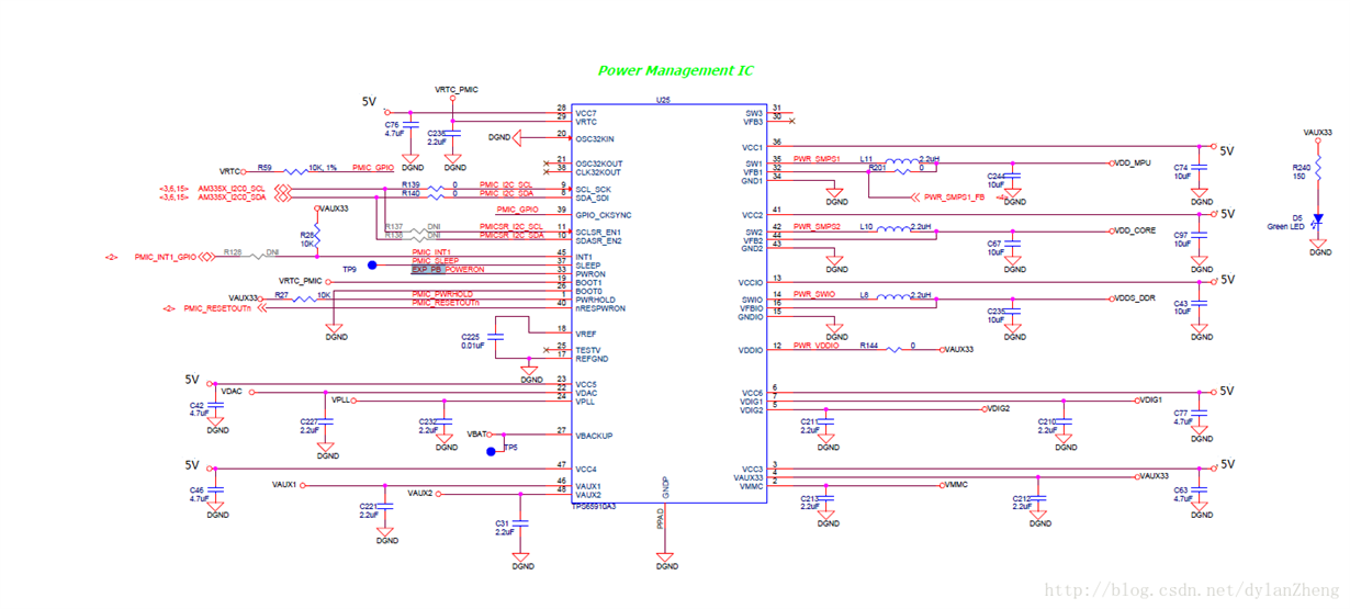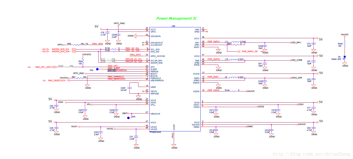 具体如下图,VBAT在断电情况下为3V-3.3V的纽扣电池CR2025提供,在通电情况下为65910的VAUX2提供。