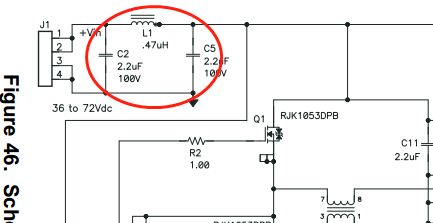 我在这个芯片datasheet第40页的应用电路中看到,输入有一个π型滤波,如图。