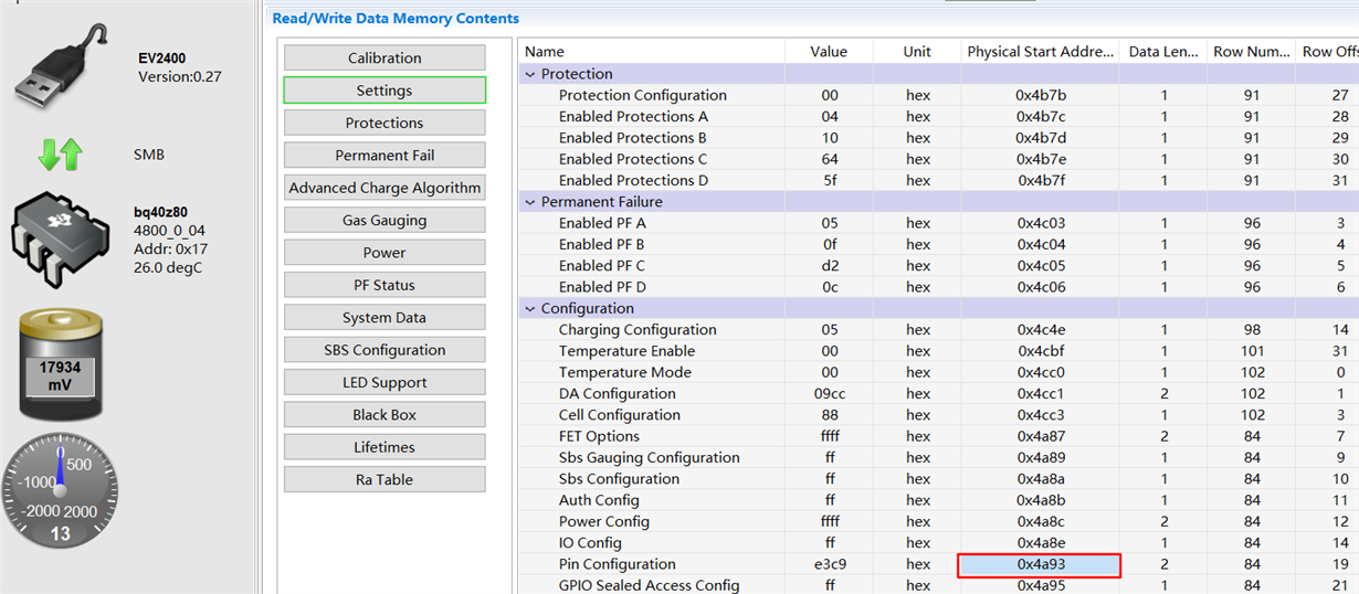 EV2400 中的DATA Memory 中的地址跟bq40Z80中的地址对不上!!
