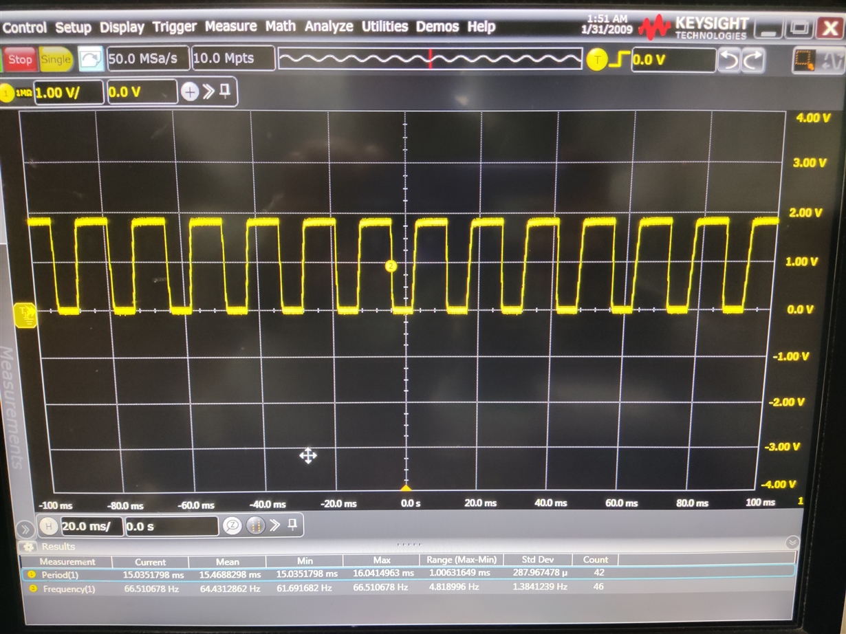 输出达不带0.925V,同样是一个周期66Hz的方波