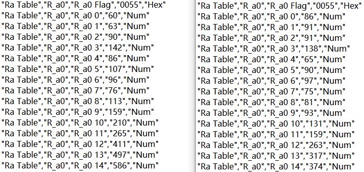 两个电池组学习后的Ra Table对比,是否误差过大?
