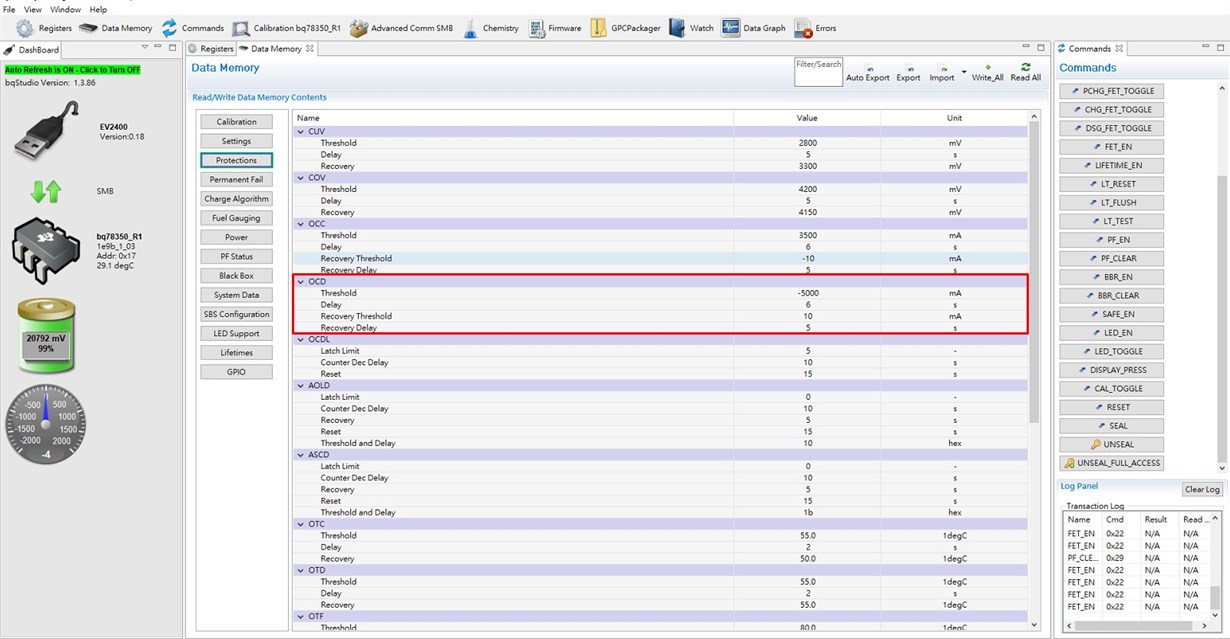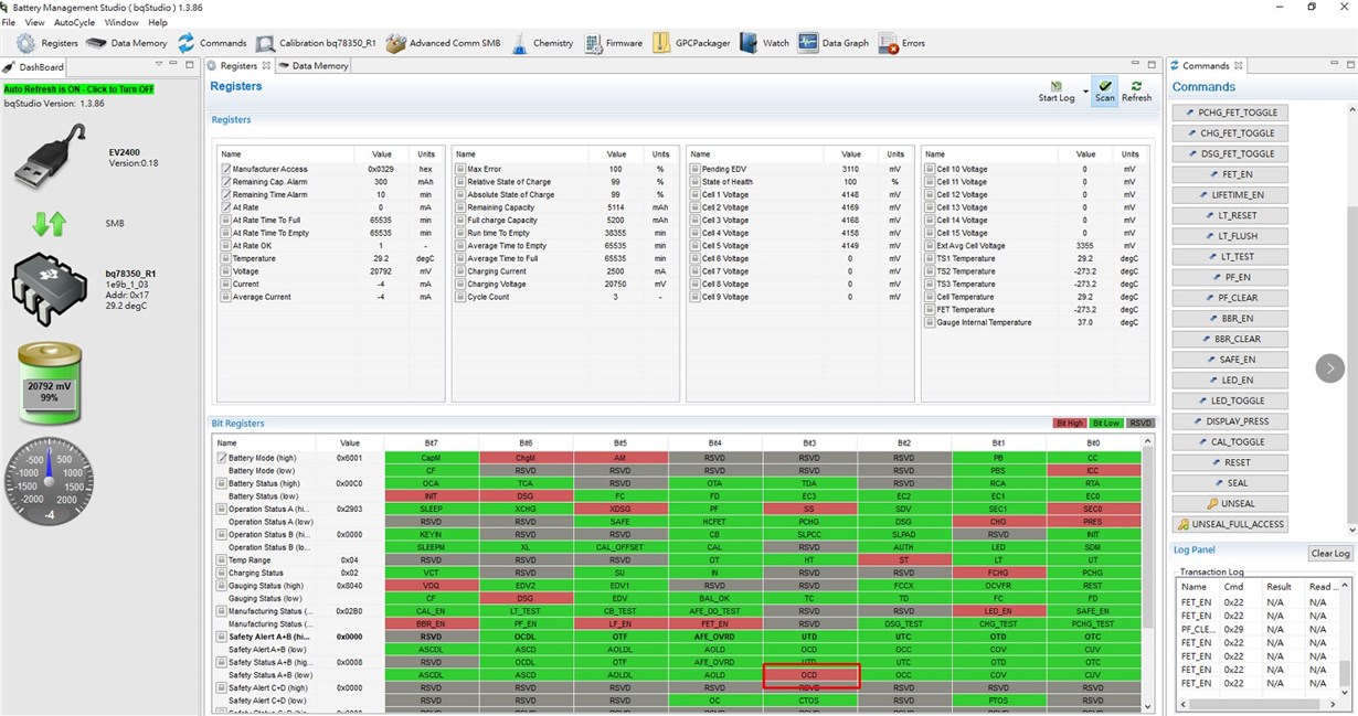 BQ78650+BQ36920 放電過電流後OCD旗標恆亮 ,充電後無法消除。