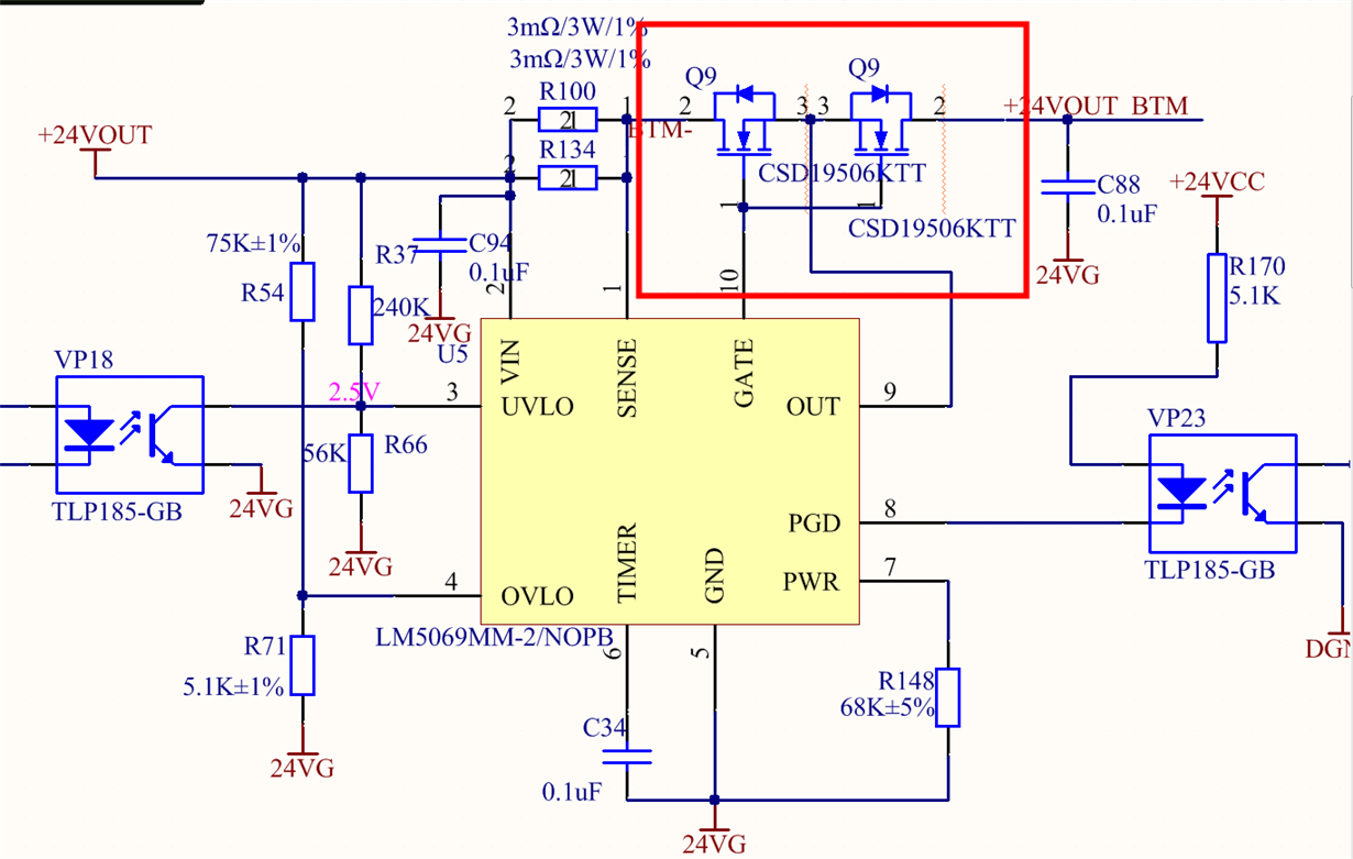 LM5069的作用不应该是在负载出现短路等过大电流的异常情况下,切断输入电压进入负载的路径以达到保护的目的,否则负载端异常状态如何保护?