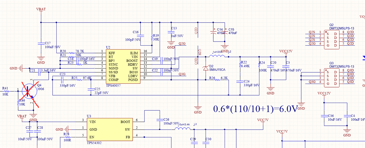 我司使用TPS40057用作22~27V降压至12V 18~20A输出的设计