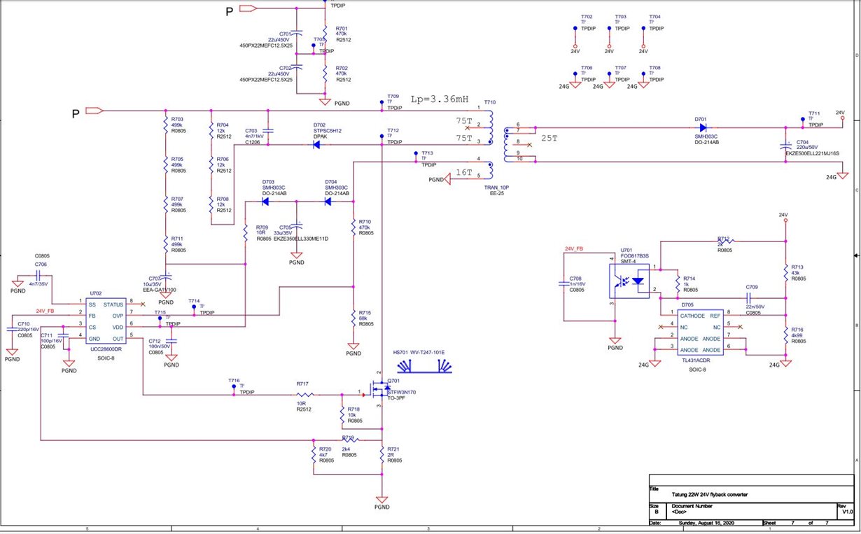 我flyback电路用的PWM IC是UCC28600,规格中的输入电源很宽(200~700Vdc),