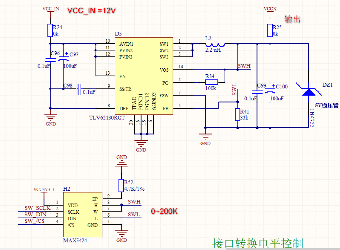 以上是我们的电路图,负载是多片SN65LVDM176和SN74LVC125A,同样电路图设计板子上其他地方也有用到。通过更换电阻是可以输出5V的。5424的可调电阻范围是0~200K。