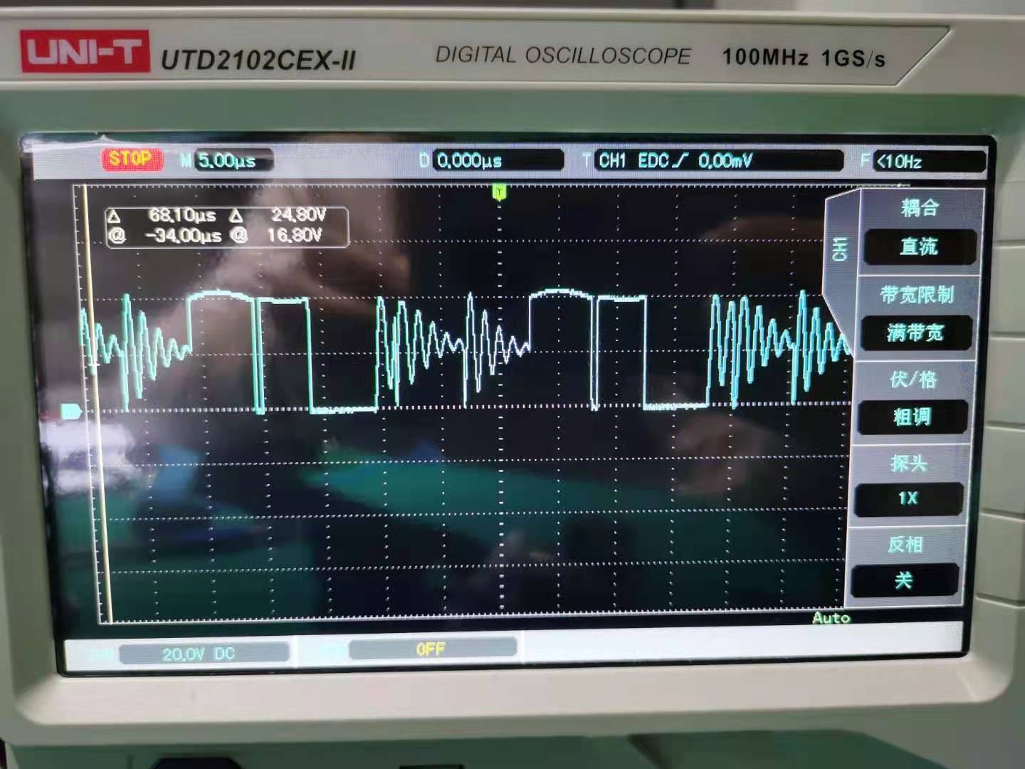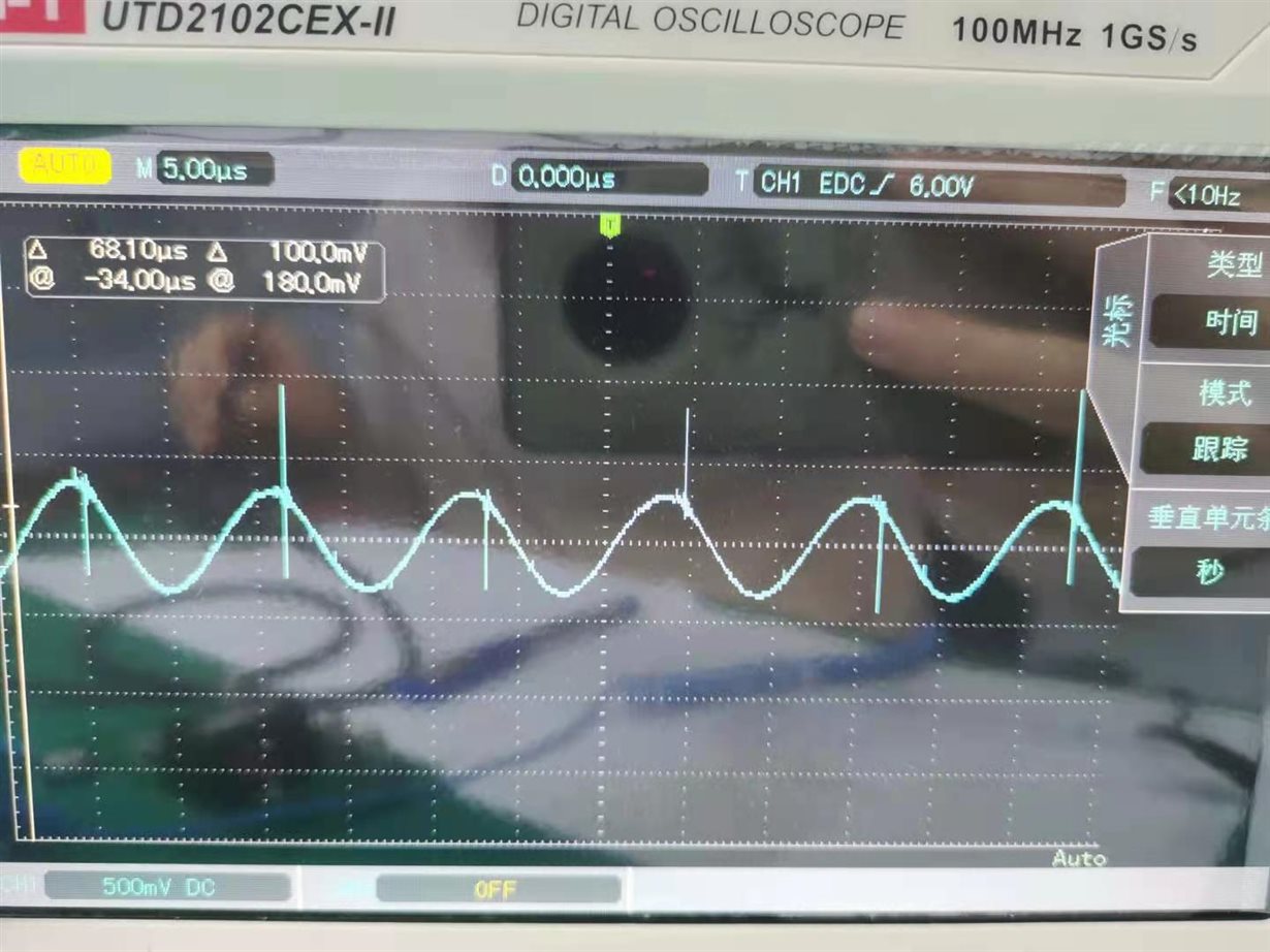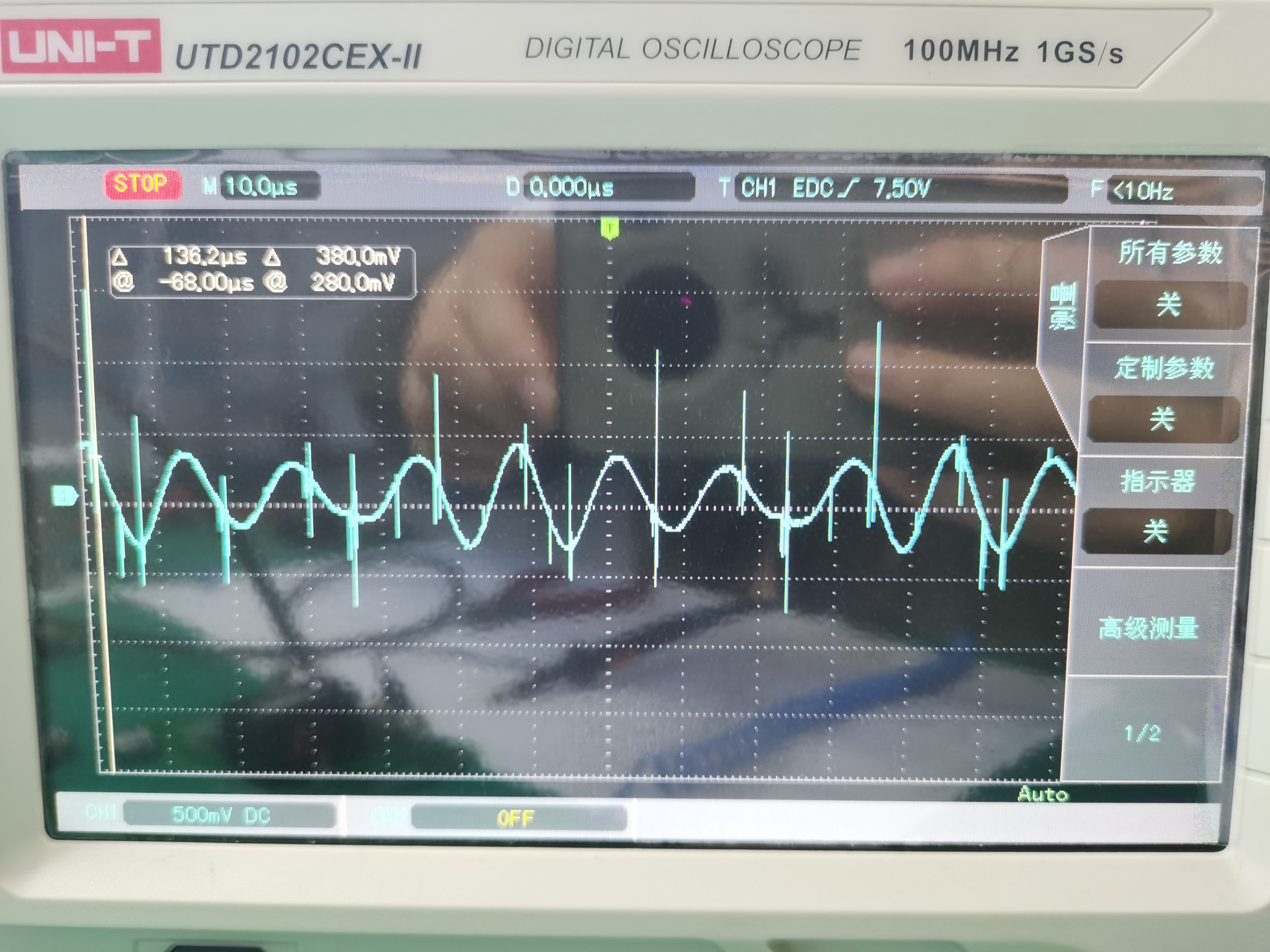 LM5116负载能力不足,设计要求输入36-58V,输出24V12A;用锂电池供电55V(电流可达200Ah),输出端接电子负载,只有电流调节到1A左右时电压从24V就降到十几V,请问什么原因,用直流电源供电40V输出电流可以达到8A才会压降,波形图为SW脚