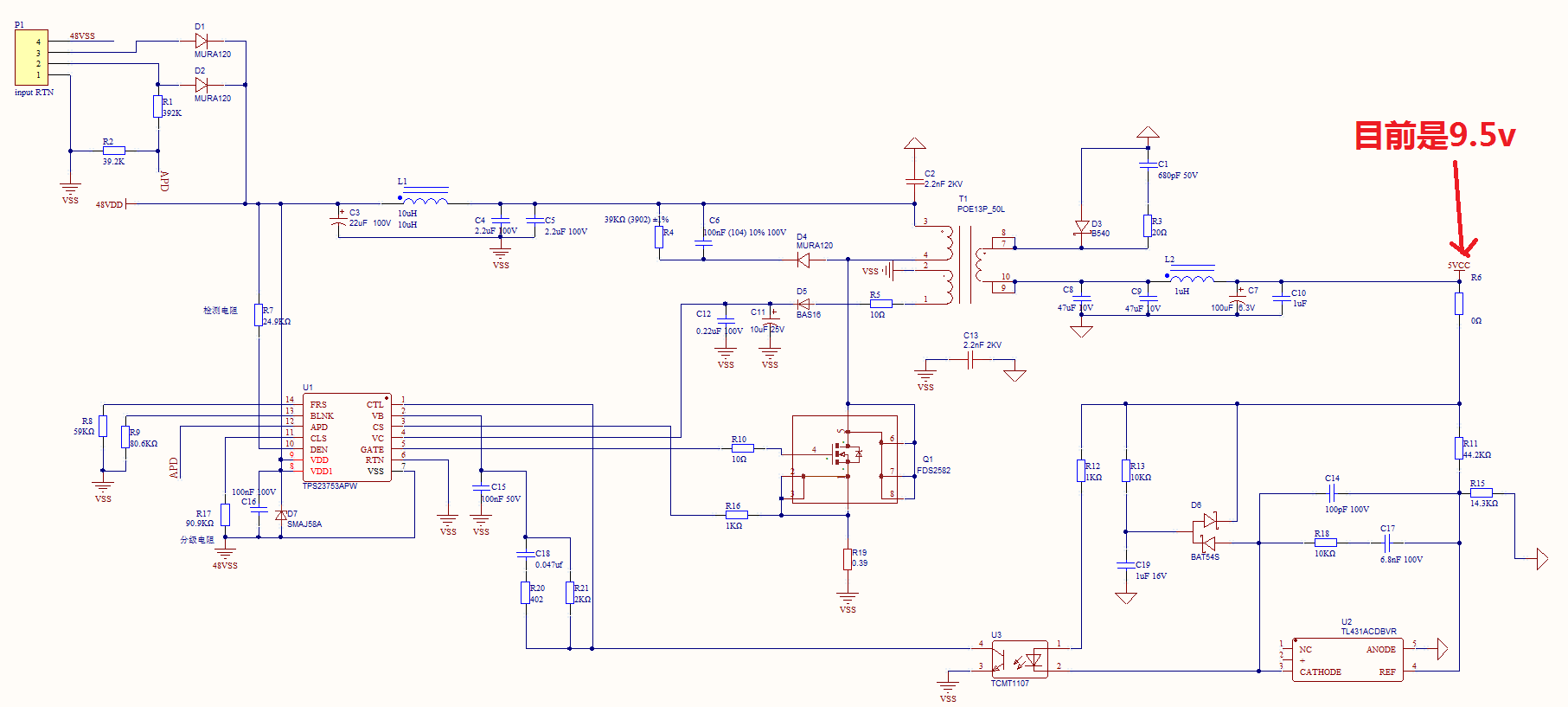 您好,我们用TPS23753做POE电源,输出电压设置为5V,电路图附在后面,现在我们用直流24v作为输入(直流电源最大过载电流目前设的是0.2A)进行测试,发现电源上电以后直流电源频繁切换到过载状态,请问我们是不是我们设计的电路有问题?多谢!5857.TPS23753.pdf