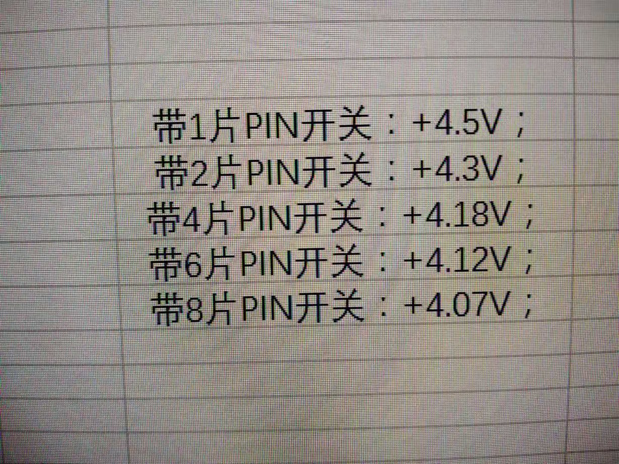 在使用5110过程中,发现后级带PIN开关电压会降低,一个PIN开关的电流是25mA,测试数据如下