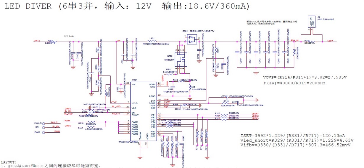 TPS61196PWPRQ1输出电流偏大,设计值为360mA,万用表实测372mA,Riset电阻设计值40.83K,实测值为40.74K,并无较大偏差。