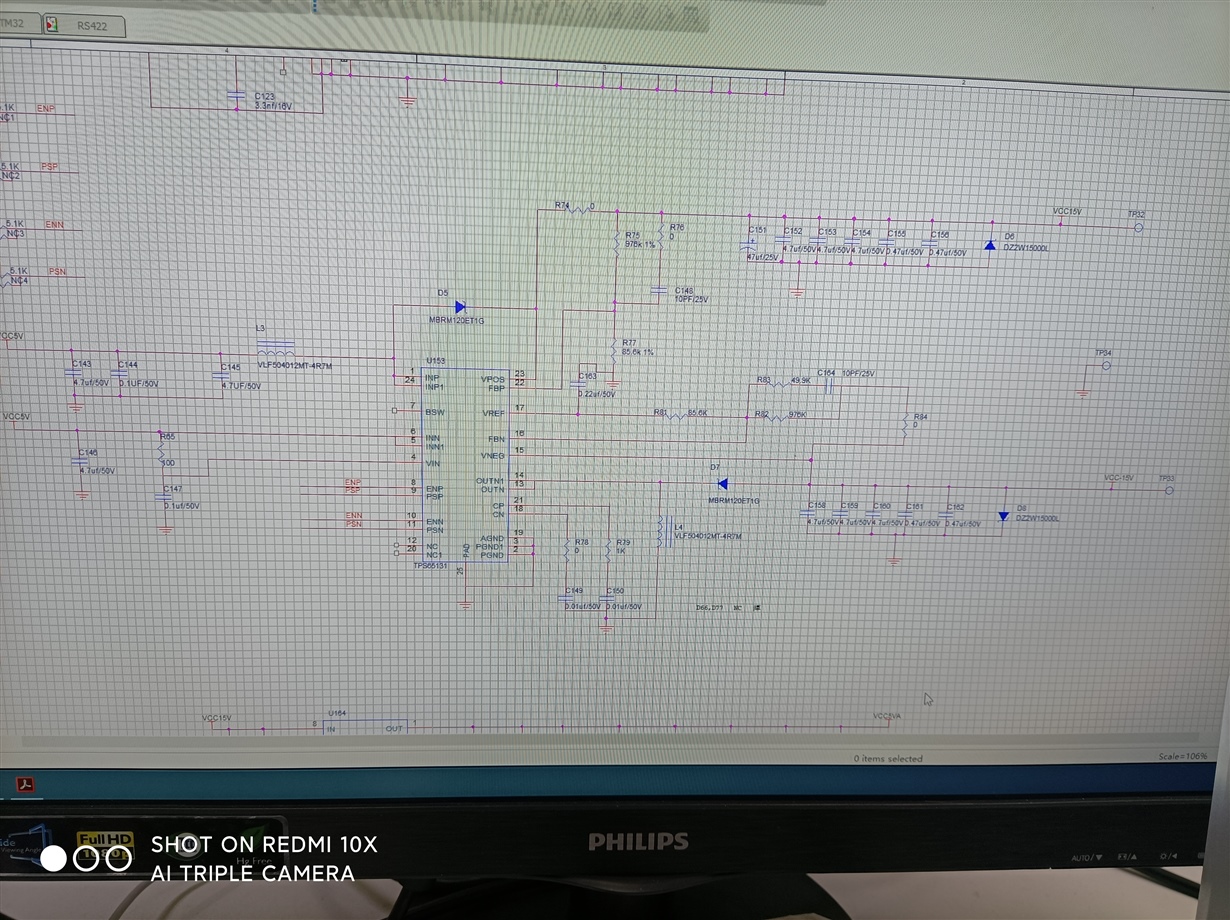TPS65131,输入电压5V,输出电压+/-15V,原理图如上,直流电源设置为5V,3A,上电后直流源过流保护,此时输入电压拉低为1.2V,ENP,PSP,ENN,PSN为1.2V。L1为1.2V恒压。