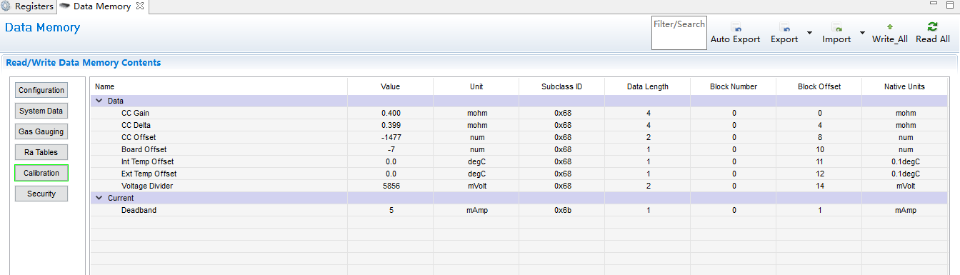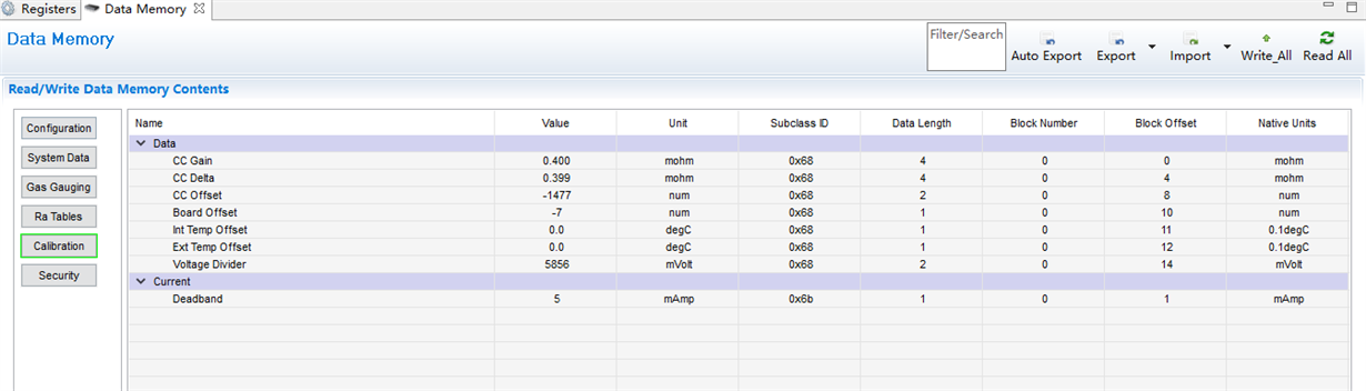 目前的我的方案:电池设计容量为20Ah,单节电芯电压为2.8V~3.6V,共15节,最大电压为54V,使用的bqz文件为0100_0_16-bq34z100G1。