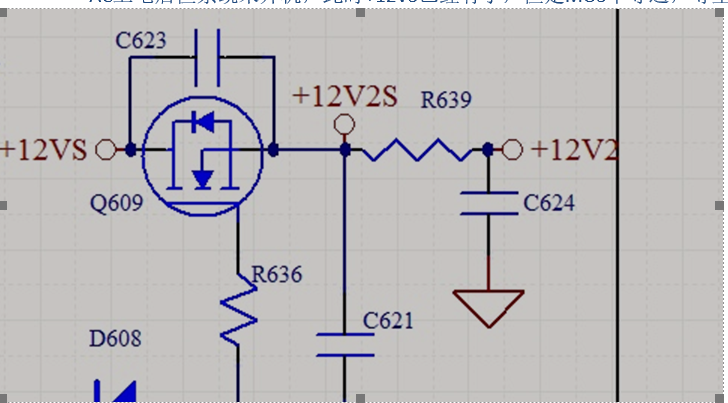 PC电源上的ORING MOS接发如下,MOS的D极接的是12VS,S极接的是12V2(显卡供电)