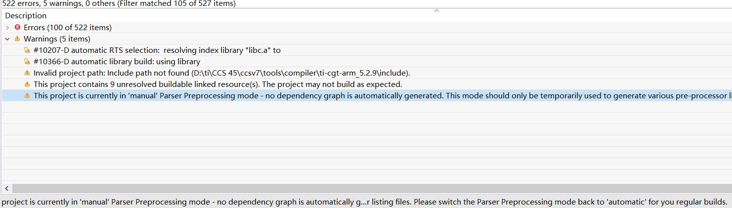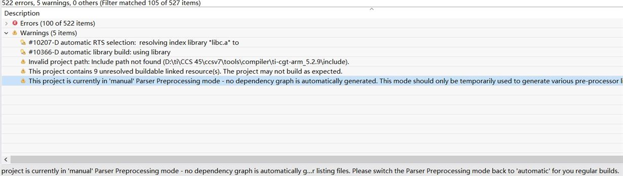 之前ccs用的是5.3的版本,前几天卸载换了9.3的版本,直接导入以前的工程,于是工程编译处理提示找不到系统指定文件等问题