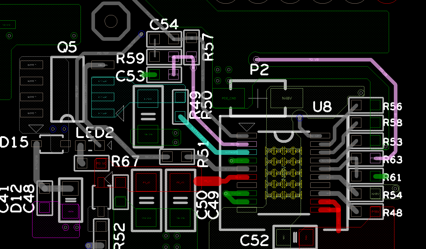 3. 连接48V直流电源搭在P48V和N48V之间,测试结果一致;