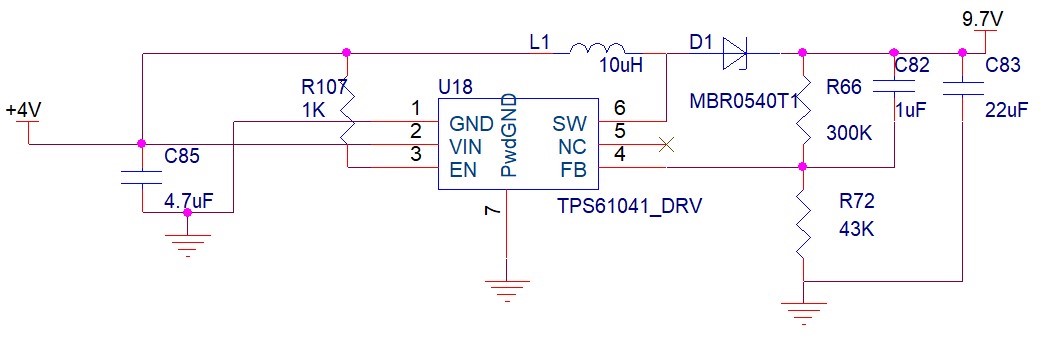 我在做定频2KHz的机械震动实验时发现TPS61041出现了一个随震动频率的噪声,请问这个噪声和那些元器件相关,如何能够减小他。原理图及测试结果见附件。