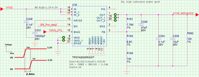 ①对于TPS7A8300RGW来说,Ven早于Vin上电,是否是导致如上问题的原因;