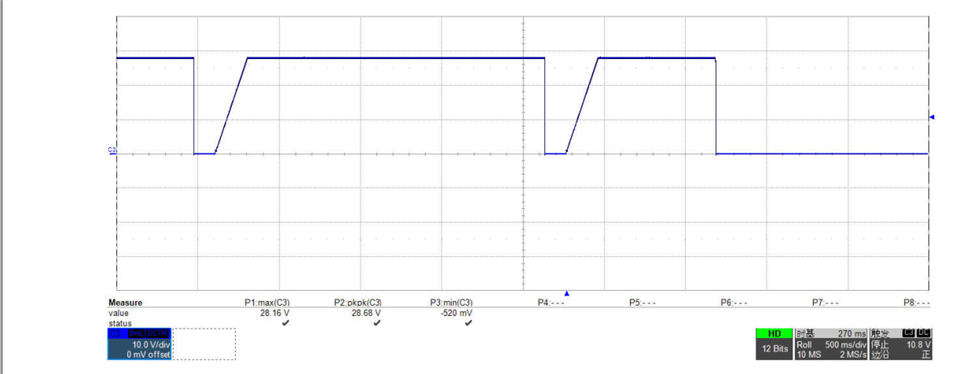 如标题所述,软件参考的是ti官方硬开关全桥程序修改使用的。空载时一切正常,在负载加的高些(目前最大试了半载),输出就会异常关闭重启,保护程序已经屏蔽,另外保护后恢复时间也与预设的恢复时间不一致,可以排除程序造成的保护。而且恢复输出后(去掉负载),无法通过pmbus与电脑通信,用的fusion digital power studio,看起来像是程序跑飞了,图片是输出电压加载后波形。请问有哪些原因会导致这种现象呢?