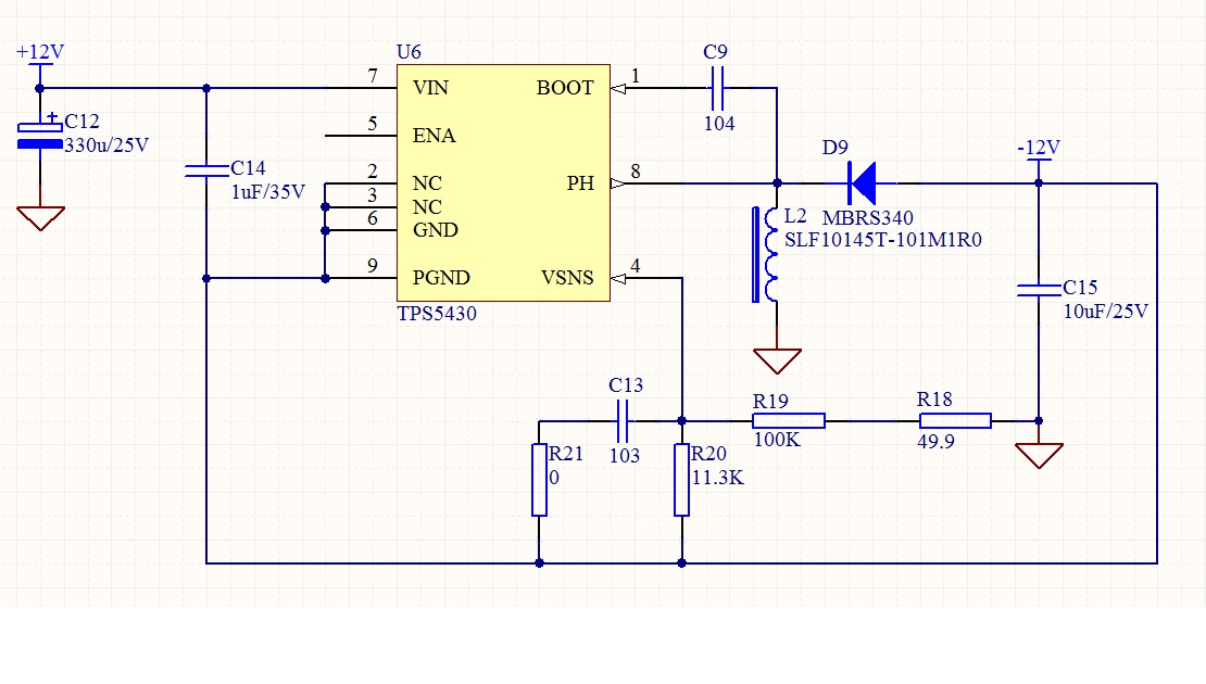 根据slvr866文档原理图,设计12V输入,-12V/100mA输出,电路原理图见附件:
