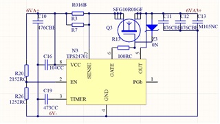 您好,我们最近产品使用TPS24701做限流电路,在同样的电路中,19批次的产品可以正常实现短路和过流保护后可恢复的功能,今年从代理商买的产品,短路和过流后不恢复,需要重新上电才能恢复,代理商的技术支持说芯片没问题,我们很奇怪,TPS24701不是可以自动恢复的吗?如果是锁死的,不应该是TPS24700吗?请问是我们电路有问题吗?TPS24701会因为外围电路的参数设置问题出现短路后不能恢复的功能吗?谢谢!附件中为我们使用产品的原理图。