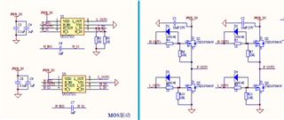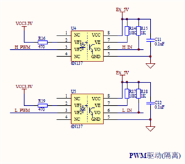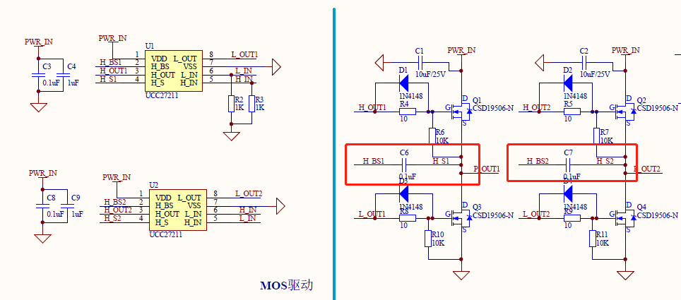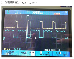 项目是使用STM32 的高级定时器功能输出20Khz的互补PWM,通过调整占空比,输出67hz的正弦波,接法是STM32→隔离型光耦(6N137)→MOS管驱动(ucc27211)→N MOS管(csd19506),程序中设置的死区时间为3us,现在的现象是STM32输出、光耦的输入输出、MOS管驱动输入都是正常的,都有死区,但是经过这个驱动管输出的波形,死区时间消失了,只有上升沿有,下降沿没有死区,这就导致后面的MOS管桥会出现发热现象,请问这是什么原因?下面附上原理图和示波器测试波形: