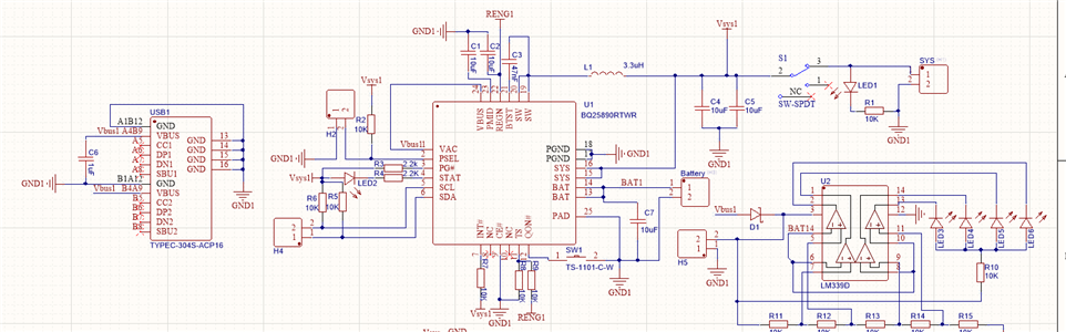 这是我所绘制的电路图(没有用到IIC通信),连接18650锂电池调试后发现SYS引脚的电压会随着电池电压跌落到3.5V以下,此时没有连接充电器充电。是我电路图设计的有问题吗?电路的其他功能都正常,充电在1.7A左右,过冲和过放保护也没什么问题。我读数据手册上说SYS引脚的电压不会低于3.5V,是我理解错了吗?我还用过BQ25611D,BQ25890等都存在SYS电压跌落的问题,烦请尽快回复