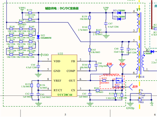 参考典型应用,搭建了一个辅助反激供电模块。存在的问题是输出供电电压VPP电压带载后会垮,片子的反馈进行了占空比调节,但是电压升不到设定电压12V只能稳在10V左右。