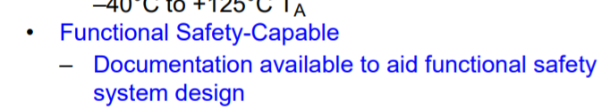 (datasheet 里面没有提到这个功能安全认证,在上面的网站上也没有找到这个芯片)