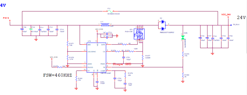 几个关键回路上比如FB回路断开,或者主功率回路的二极管断开,那课NMOS都会被烧掉(还是在控制了输入功率很低的情况下:输入12V 0.3A,输出24);这两种情况的G极驱动都是在开关的,开关频率451K 低电平占空比94%,幅值是6.67V
