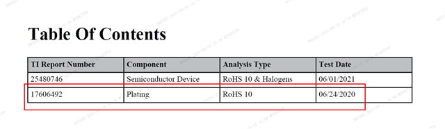 关于Device - CSD17381F4 Restricted Chemicals Test Results 报告中过期,请问哪里有最新ROHS 10资料下载