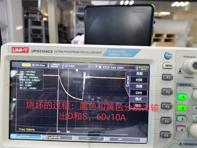 5.在60v条件下,10A即会烧坏MOS管,不是立即烧,开关不定次数之后开始烧坏