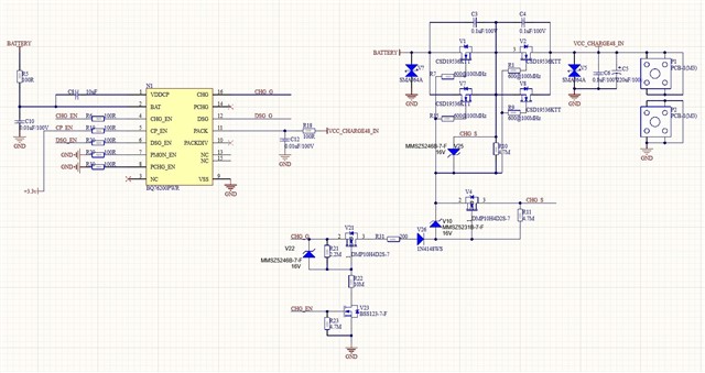 2.此电路是用作电池输出开关控制使用:实际的使用场景是多个电池组(每个电池组都接一个这样的切换板)共同供电一个设备,当一个电池组没电的时候,切换至另一个电池组继续供电