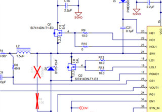 本身同步的MOS, 是不需要额外的续流肖特基,加之MOS管本身也有体二极管的。