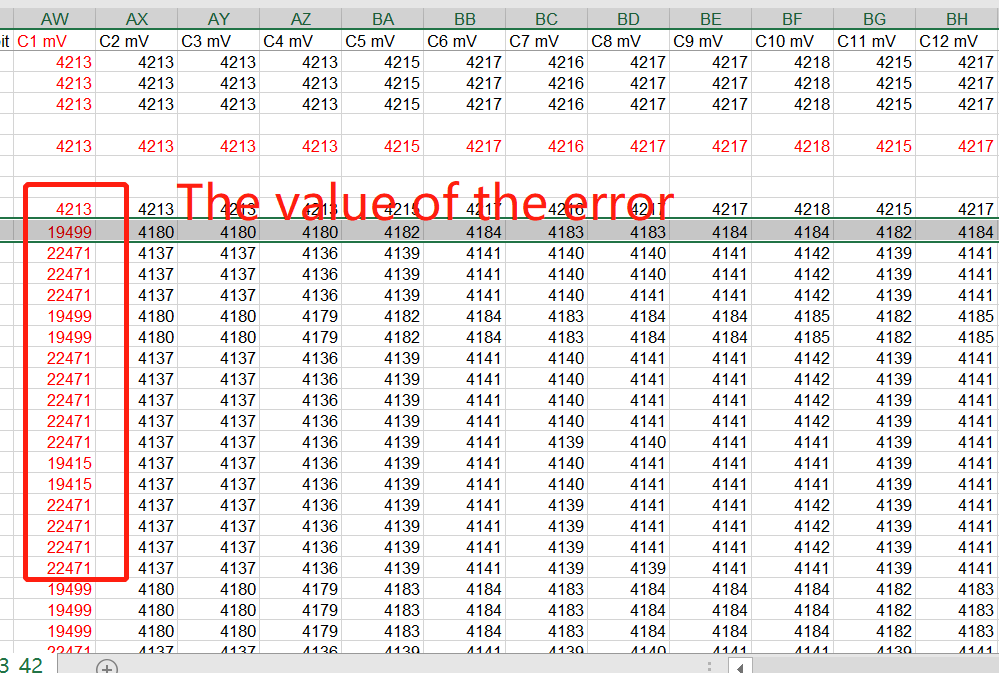 English:STM32 I2C reads BQ7694003 to test the voltage. Normally, the data is accurate. When the MCU and BQ769 enter the sleep state and wake up again, the voltage value is very large in probability, and this value is impossible to exist.