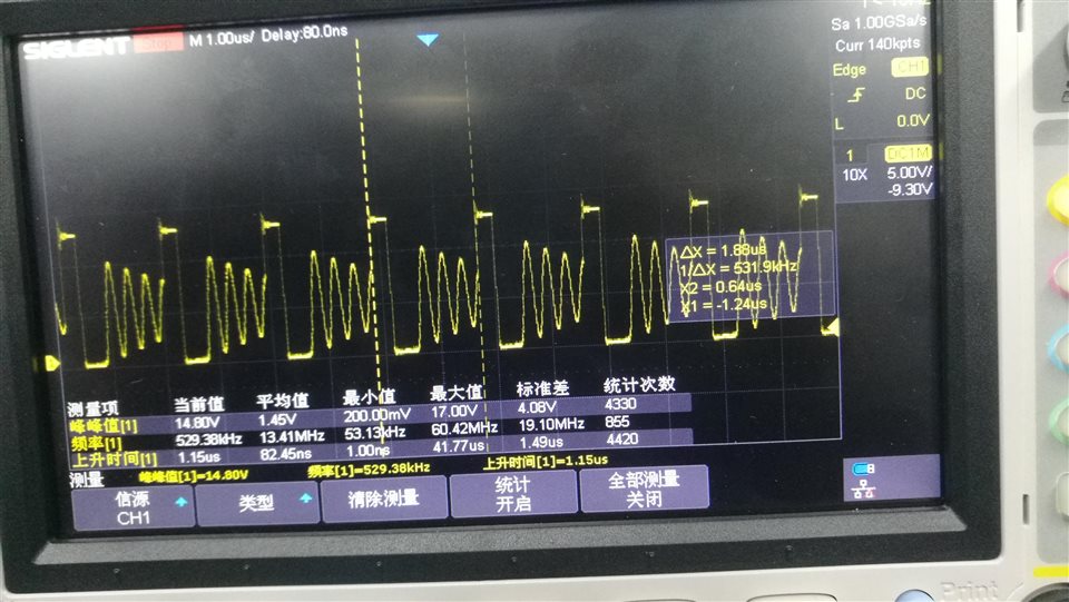 短路保护输出电压为0, 电流是跳动正常,看频率下降为1/2,1/4,1/8.