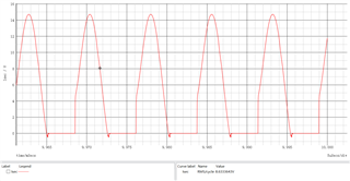 Vin=120VDC时,次级电流有效值为8.6A;Vin=380VDC时,次级电流有效值为6.8A,如图4-5所示。虽然Vin=380VDC时有效值变小,但是由于non-ZCS,SR是硬关断,关断损耗大,而且SR关断电压尖峰也大,实际电路中SR的关断电压尖峰可能会超过150V,会损坏SR管。