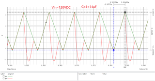 120VDC实现临界ZCS的电路参数:Lm=115uH,Lk=2.5uH,Clamp=440nF,Co1=27uF